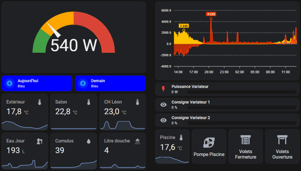 Voici quelques exemples de captures d’écran de mon Home Assistant.