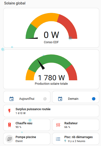 Votre installation solaire utilise deux variateurs de puissance pour envoyer l’énergie disponible dans un appareil (par exemple un cumulus), tout en évitant de prendre de l’électricité sur le réseau EDF.