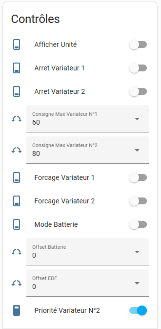 Citation de Laurent le 19 novembre 2025, 7h45Hello, après réflexion, je vais plutôt travailler sur l’inversion des priorités et sur une consigne maximum, car j’ai peur qu’une consigne minimum entraîne un phénomène de yoyo s’il n’y a tout juste assez de surplus, notamment avec un seul variateur câblé.