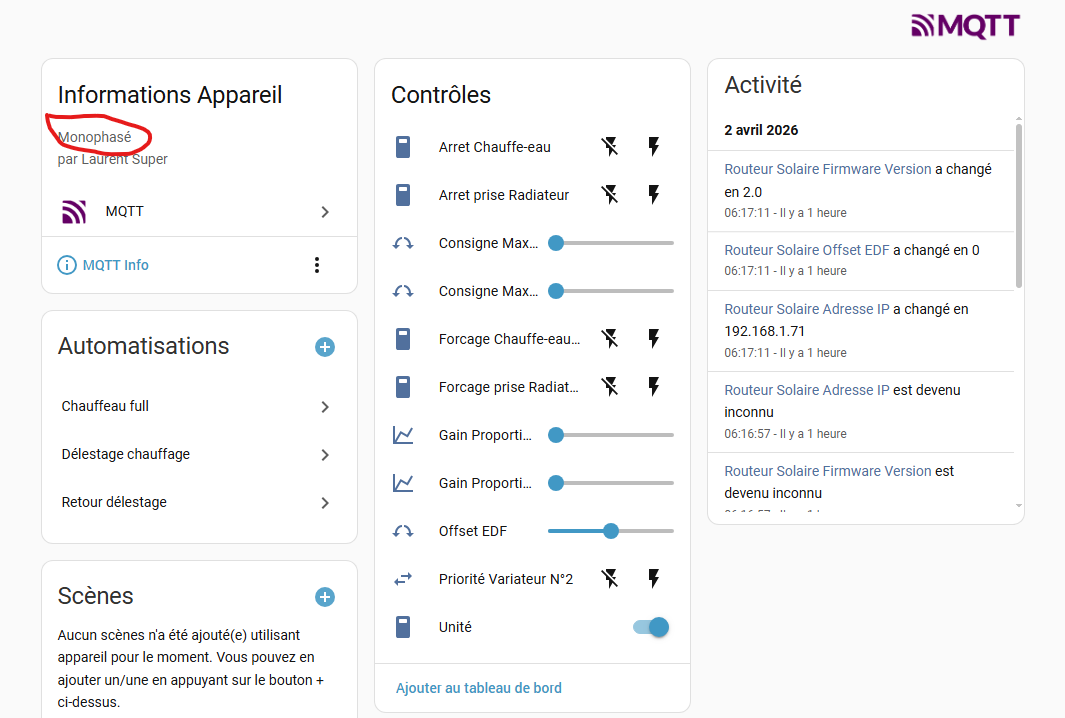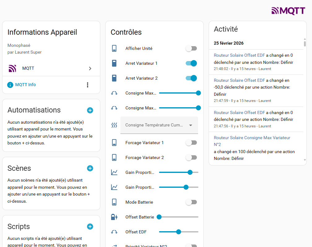 Citation de Laurent le 29 mars 2026, 16h01Et voilà, les dernières évolutions sont disponibles pour le routeur triphasé Lite !