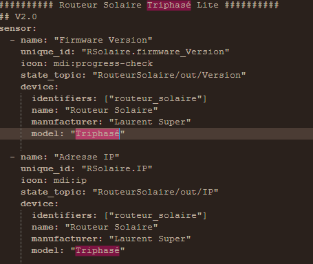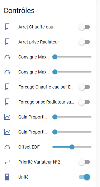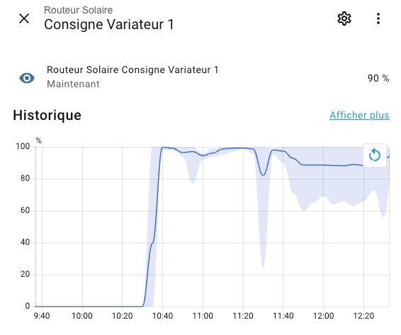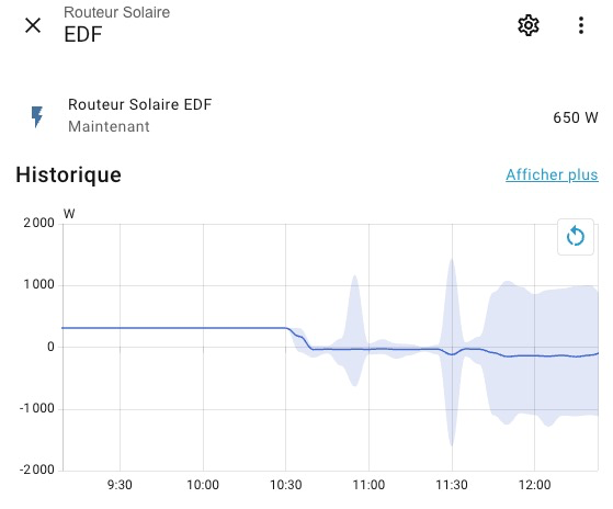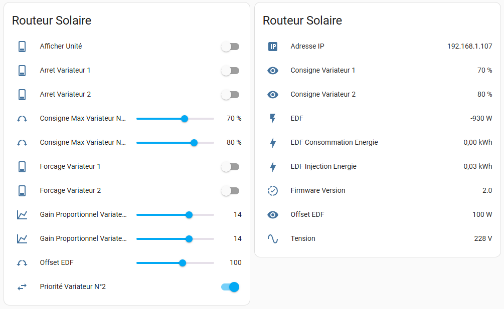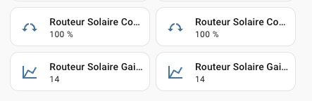 Je vais essayer de publier les tableaux de bord à l’occasion.En attendant, tu peux aller dans Paramètres → Appareils et services → Appareils, puis chercher Routeur Solaire. Tu y trouveras toutes les entités.