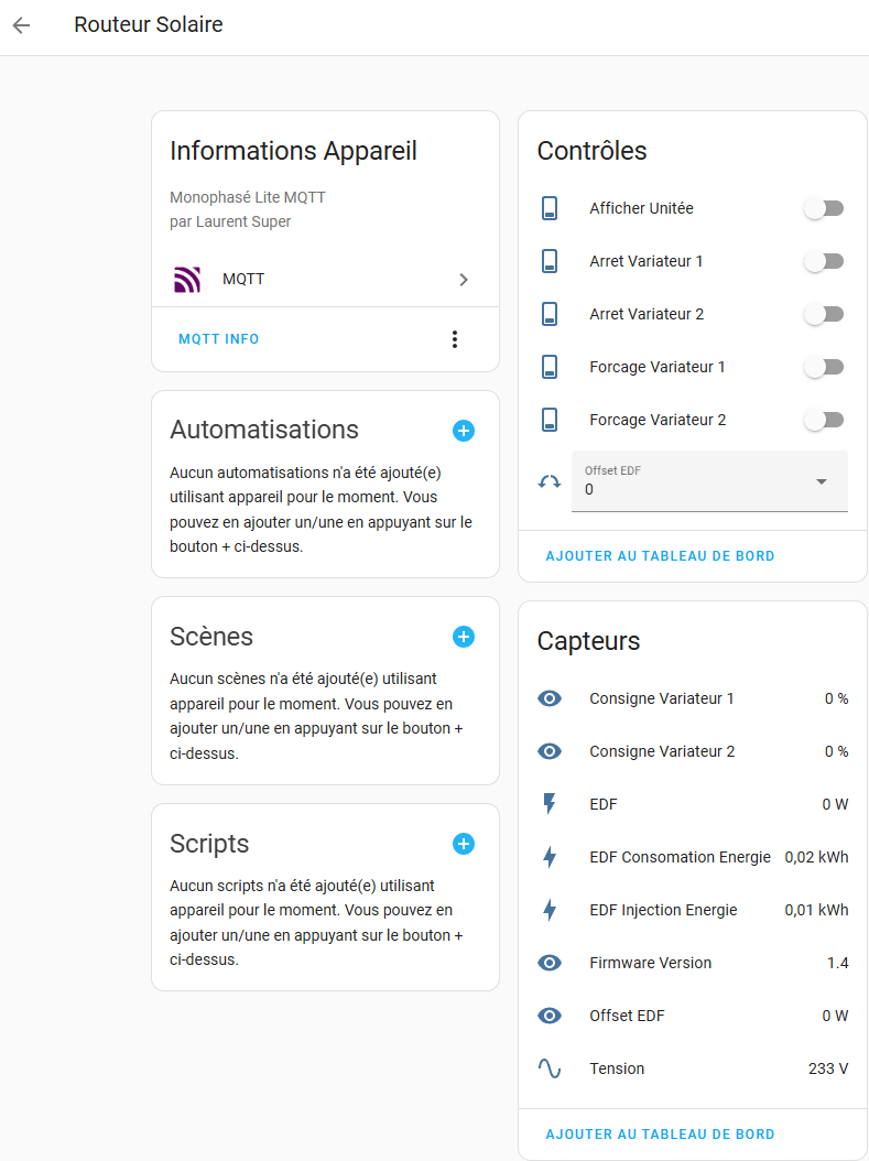 - Optimisation du code YAML afin de regrouper toutes les entités dans un nouvel appareil : Routeur Solaire.
